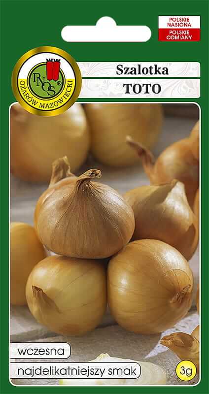 Odmiana szalotki Toto to ceniona odmiana cebuli. Wyróżnia się delikatnym, lekko słodkawym smakiem oraz subtelnym aromatem. Szalotka jest idealna do długiego przechowywania przez zimę. Dzięki swoim właściwościom doskonale sprawdza się zarówno w kuchni domowej, jak i profesjonalnej gastronomii. Cebula posiada właściwości lecznicze, bakteriobójcze – idealna w walce z przeziębieniem.