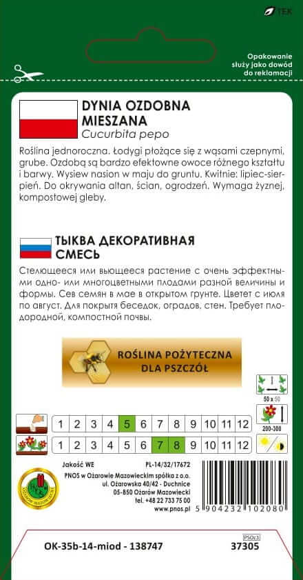 Jednoroczna roślina płożąca się lub pnąca o bardzo efektownych, jedno- lub wielobarwnych owocach, różnej wielkości i kształtu. Łodygi grube z wąsami czepnymi. Wysiew nasion w maju do gruntu. Wymaga żyznej, kompostowej gleby. Idealna do okrywania ścian, altan lub ogrodzeń. Kwitnie od lipca do sierpnia.