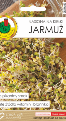 Bardzo dobra mieszanka o łagodnym smaku. Aromatyczne kiełki do wielu zastosowań kulinarnych. Mają dużą wartość odżywczą z uwagi na wysoką zawartość witamin: A, C, E z grupy B, oraz żelaza. Mieszanka pomocna przy przeziębieniach. Ma właściwości wykrztuśne. Skład mieszanki: lucerna – 75%, rzodkiewka – 25%.