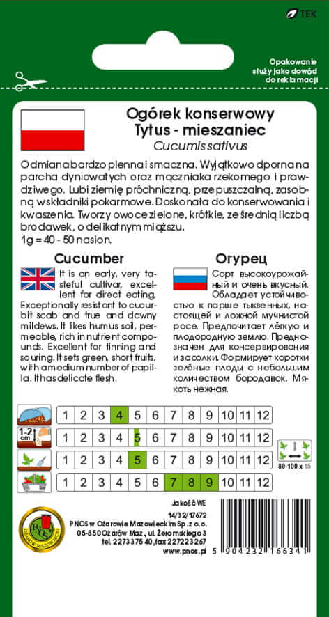 Ogórek ‘TYTUS’ F1 odmiana średnio wczesna